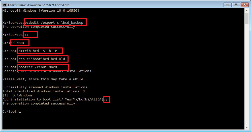 BCDedit /export C:BCD_Backup