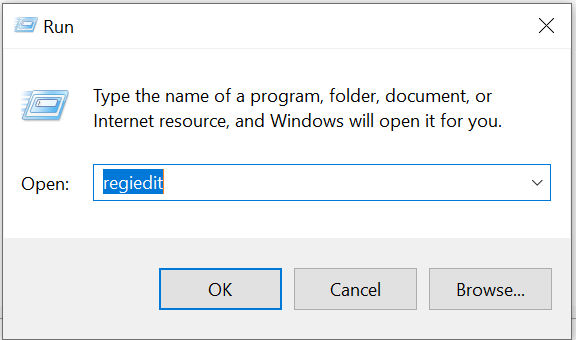 1. Windows Key + r to open run dialogue > Key in regedit and press enter