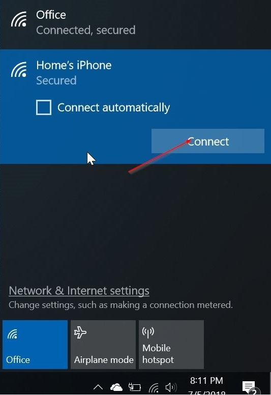 Connect Windows 10 PC to iPhone’s hotspot over Wi-Fi