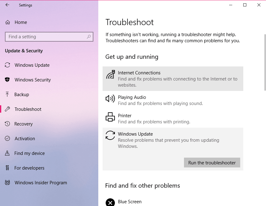 1. Go to Settings. Head over to Updates & Security > Troubleshoot. Select Windows Update, and go to Run the Troubleshooter.