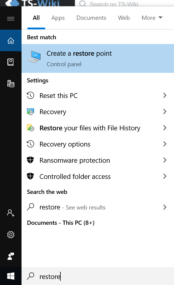 2. Search for Create a restore point, and click the top result to open the System Properties experience.
