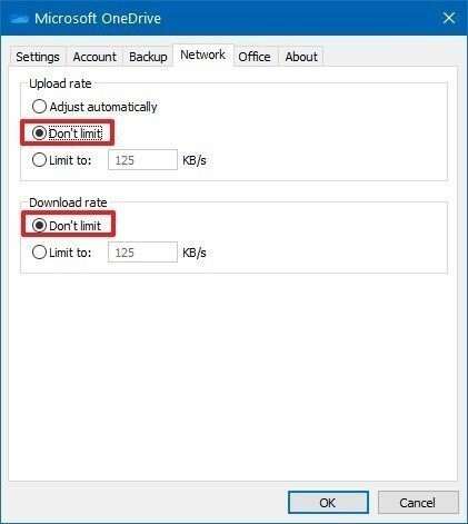 5. Under the "Upload rate" section, select the Don`t limit option.