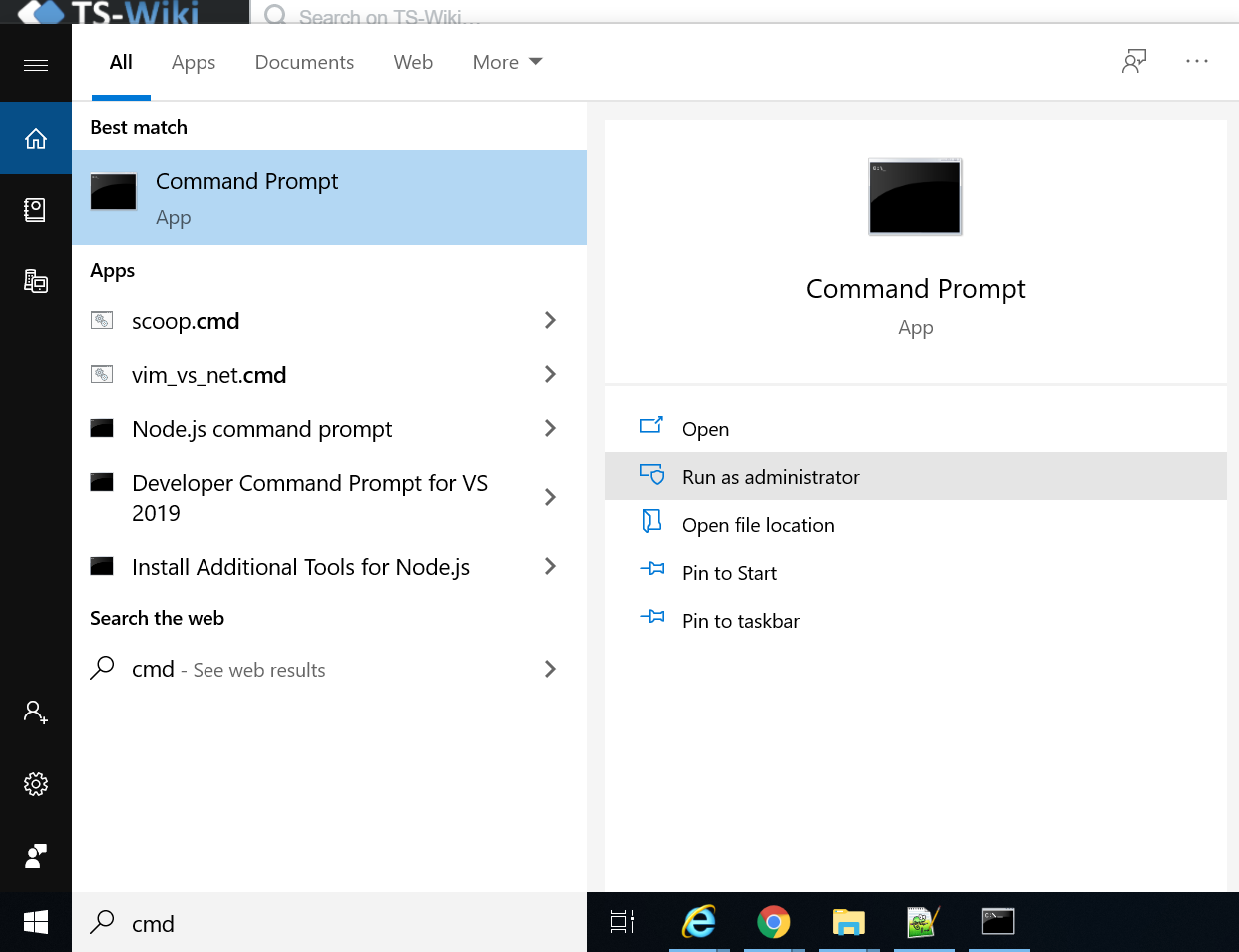 2. Search for Command Prompt and select the Run as administrator option.