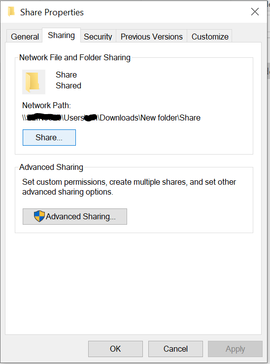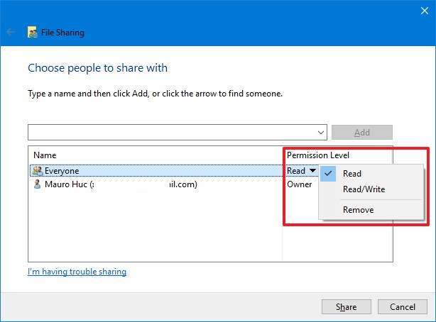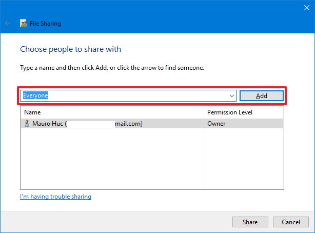 Create network file sharing on Windows 10