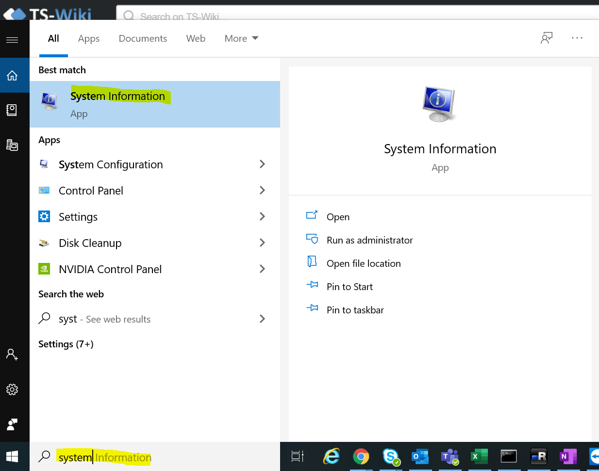 2. Search for System Information, and click the top result.