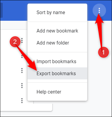 2. From the Bookmarks Manager, click the menu icon and then select “Export Bookmarks.”