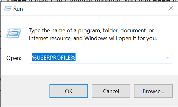 1. Open "This PC", go to C drive > Users > {Current Profile name} or Open Run. Then type %USERPROFILE% and press Enter. (Note: All folder under here will be removed later)