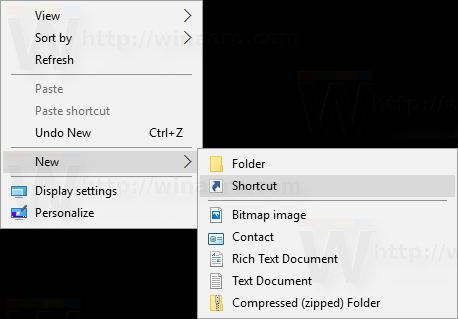 1. Right click the empty space on your Desktop. Select New - Shortcut from the context menu (see the screenshot).