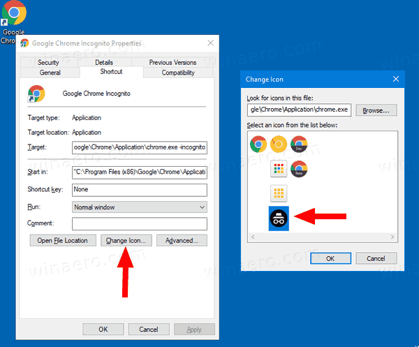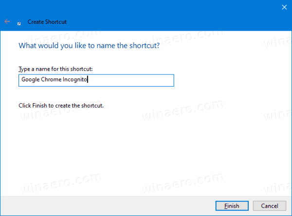 5. Name your shortcut as Google Chrome Incognito and change its icon if needed.