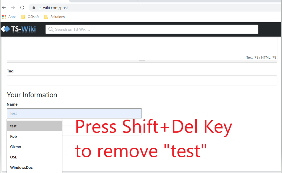 3. Click in the form element for which the browser shows a suggestion