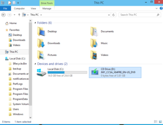 1. Insert your Windows 10 DVD, or double click its ISO image, or insert your bootable flash drive with Windows 10, depending on what you have.