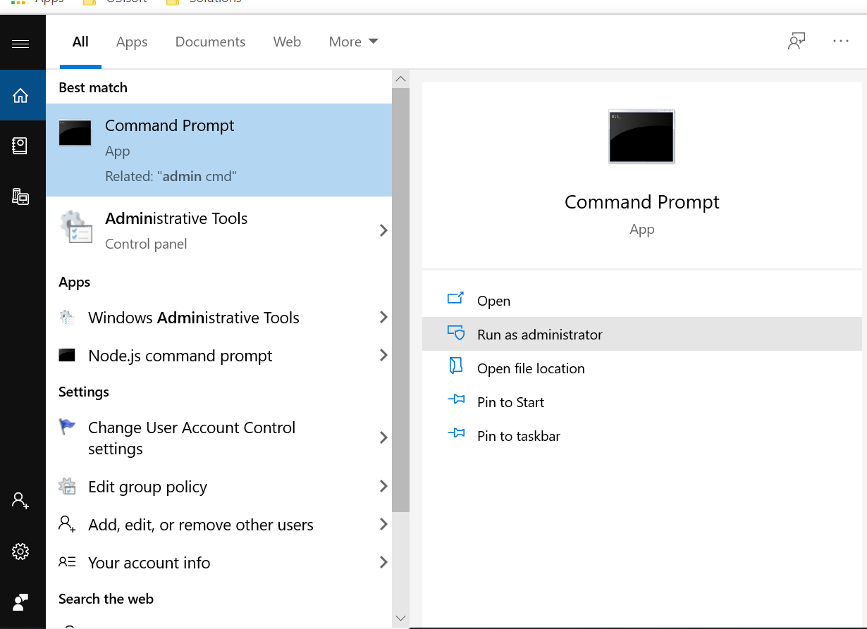 3. Now open an command prompt as administrator and type the following command: