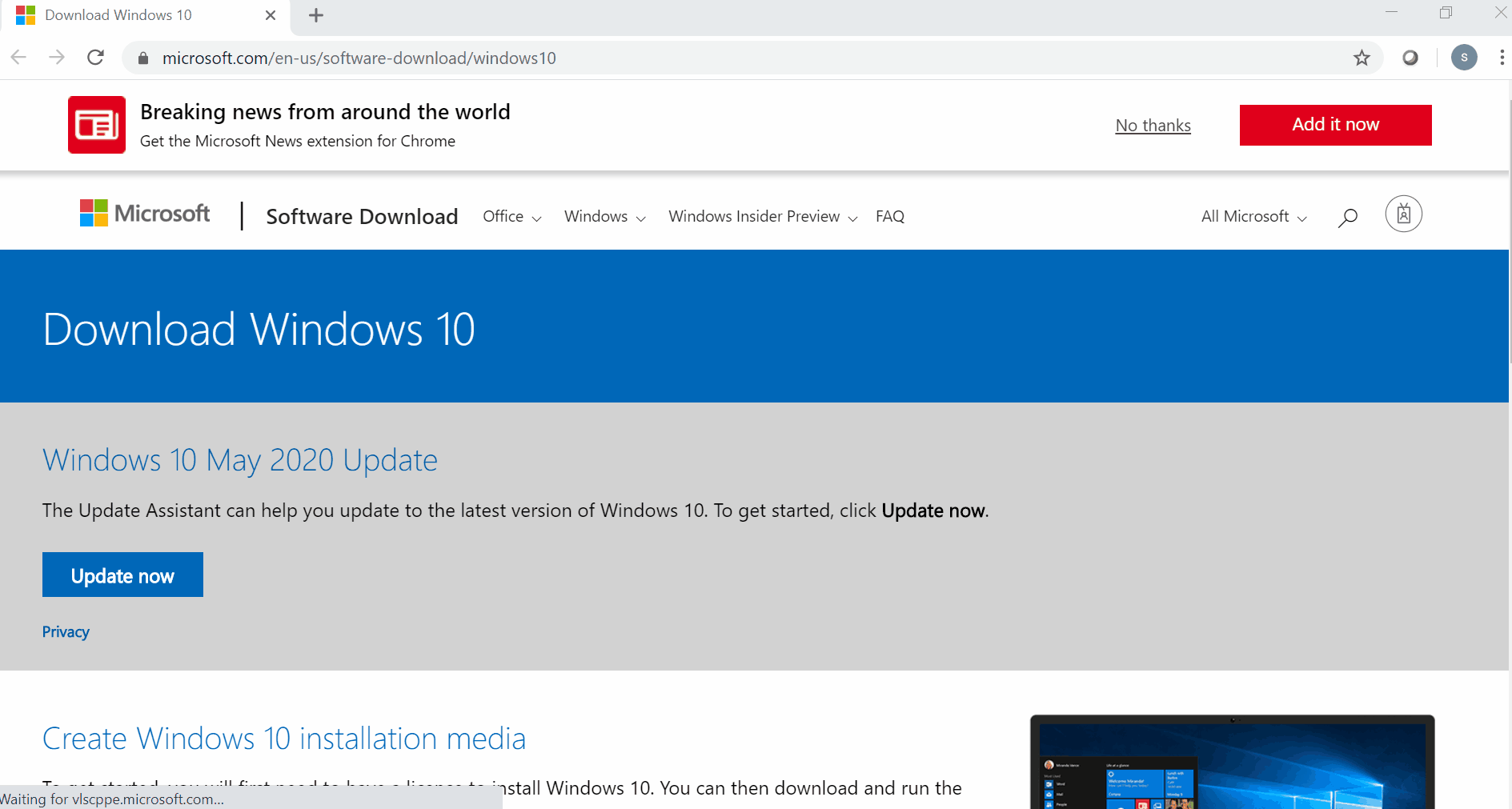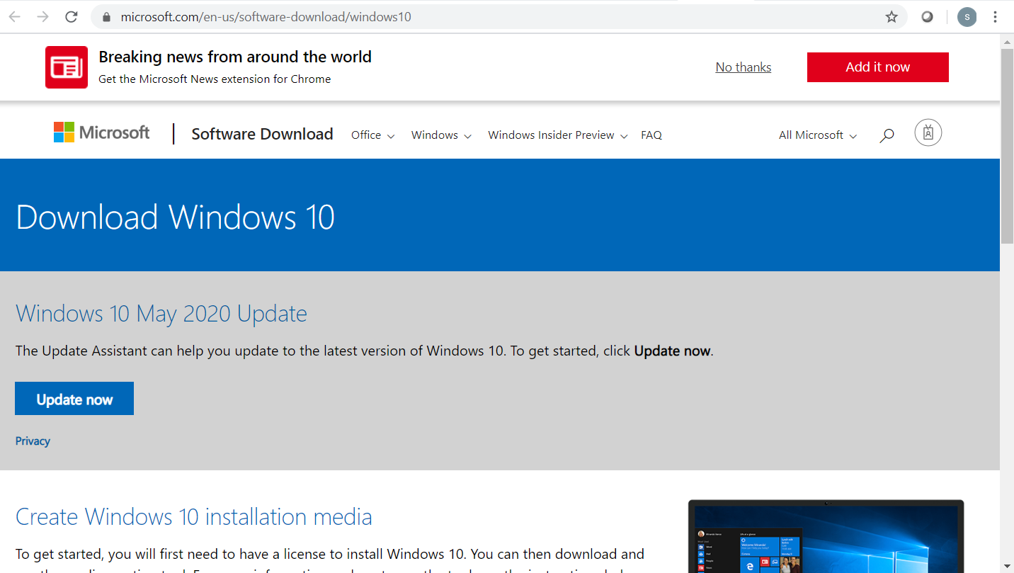 3. You will be prompted to download Windows Media Creation Tool. Do not download anything.