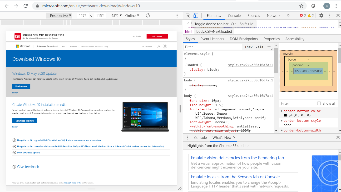 4. In Developer Tools, click on the Mobile device icon. This will start the Mobile Device Emulator feature.