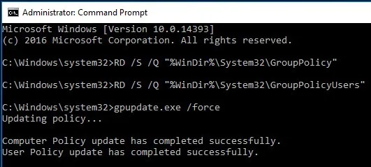 RD /S /Q "%WinDir%System32GroupPolicy"