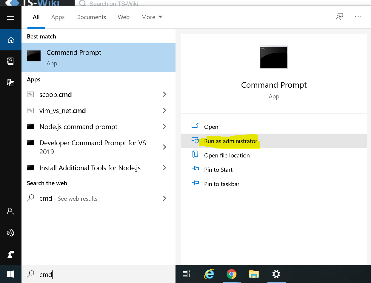 Search cmd, right-click Command Prompt and choose Run as administrator on the menu.