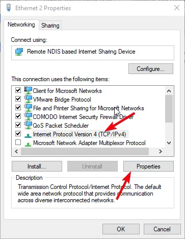 6. Select the Internet Protocol Version 4 (TCP/IPv4) item.
