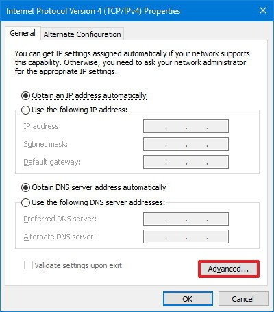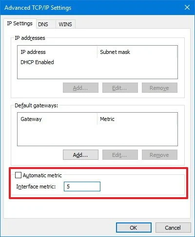 10. In the "Interface metric" field assign a priority value for the adapter.
