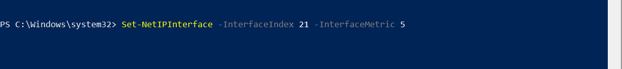 Set-NetIPInterface -InterfaceIndex 21 -InterfaceMetric 5