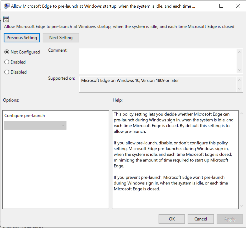Prevent Pre-Launching and Preloading of Microsoft Edge by Using Group Policy