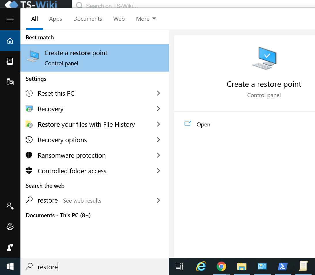 1. Type “System restore” in the search box.