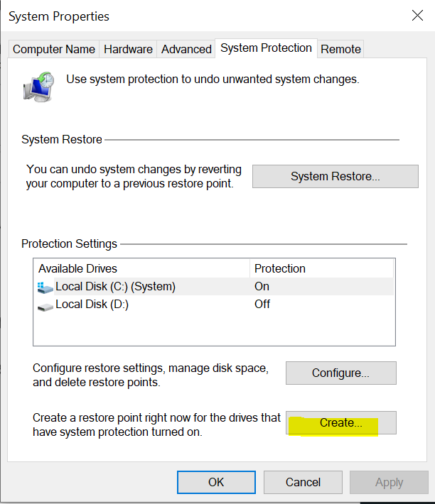 Create and Enable System Restore