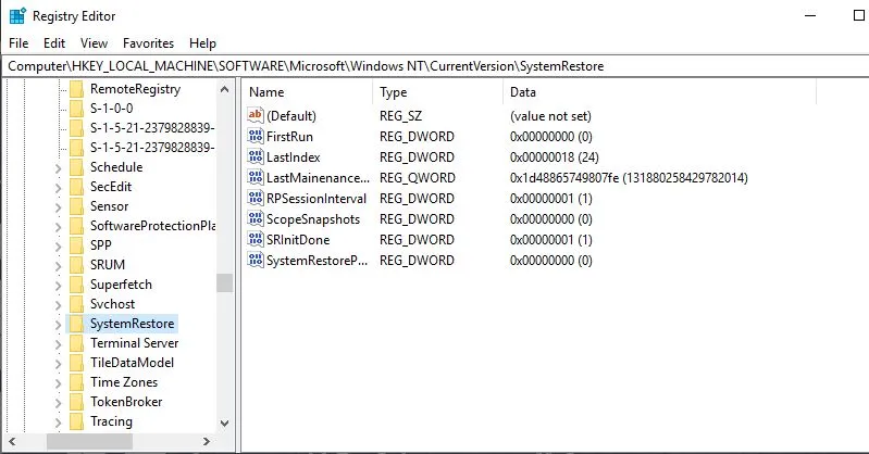 HKEY_LOCAL_MACHINESOFTWAREMicrosoftWindows NTCurrentVersionSystemRestore