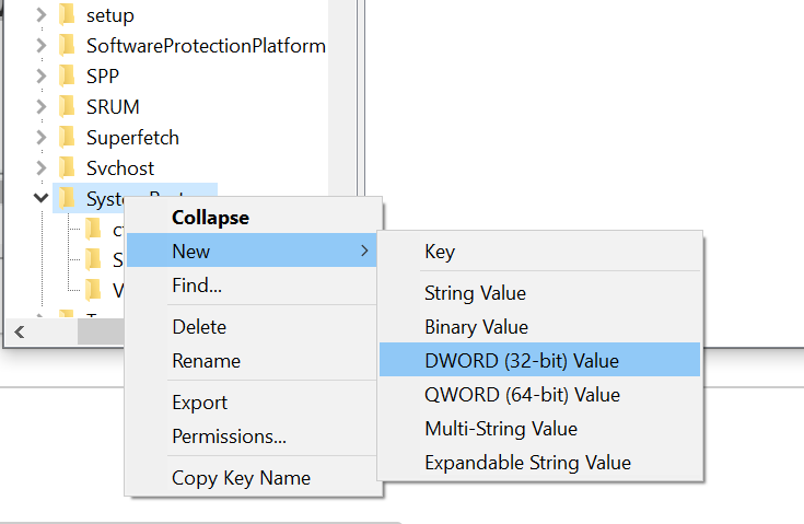6. Choose “DWORD (32-bit) Value.”