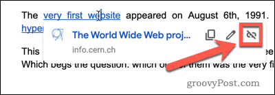 Your link will now be removed. You can repeat the same method for any other links in your document.