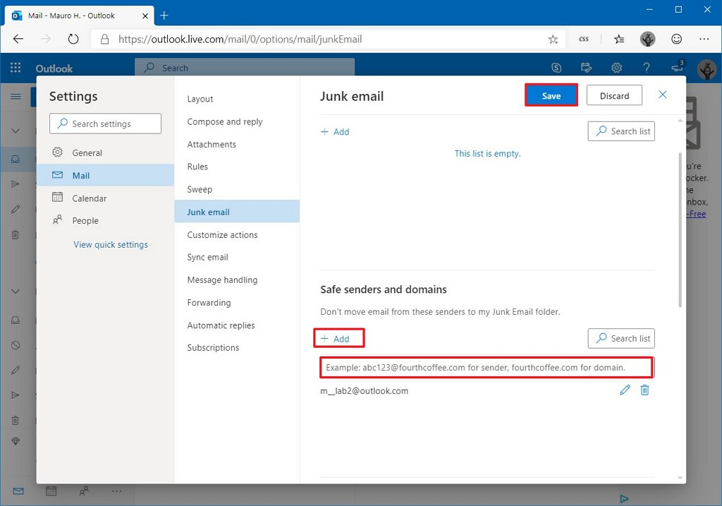 Prevent safe emails from going to Junk Email folder in Outlook Web