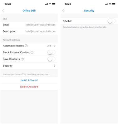 4. Tap on Security, and tap the S/MIME control, which is off by default.