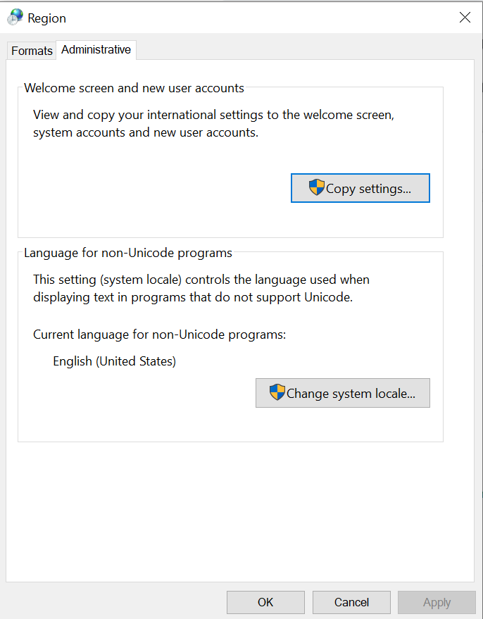 3. Click the "Administration" tab. Click the "Change System Regional Settings" button