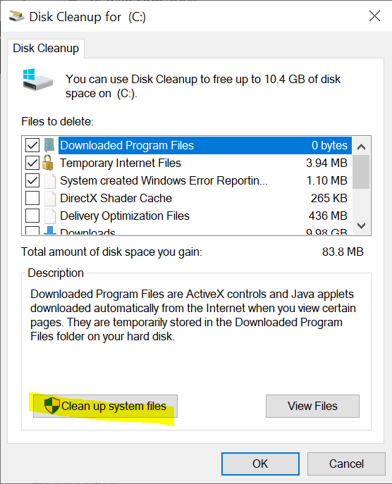 3. Click on the "Clean up system files" .