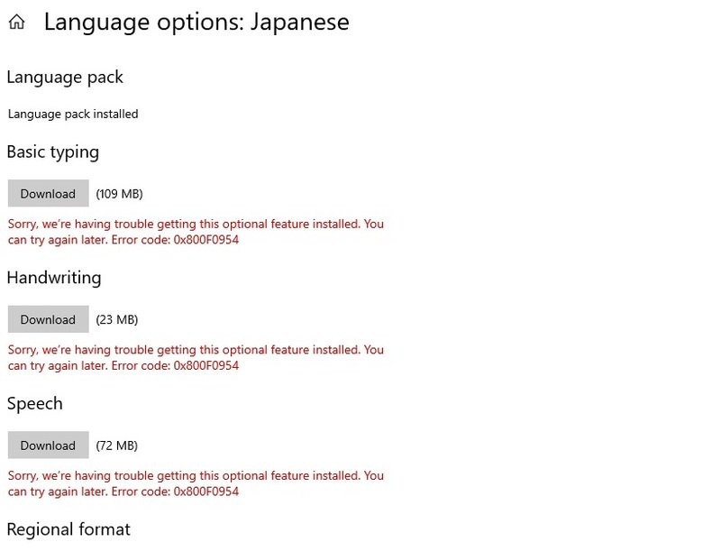 Problems in installing a language pack in Windows 10. Error: Sorry we`re having trouble getting this optional feature installed. You can try again later. Error code: 0x800F0954