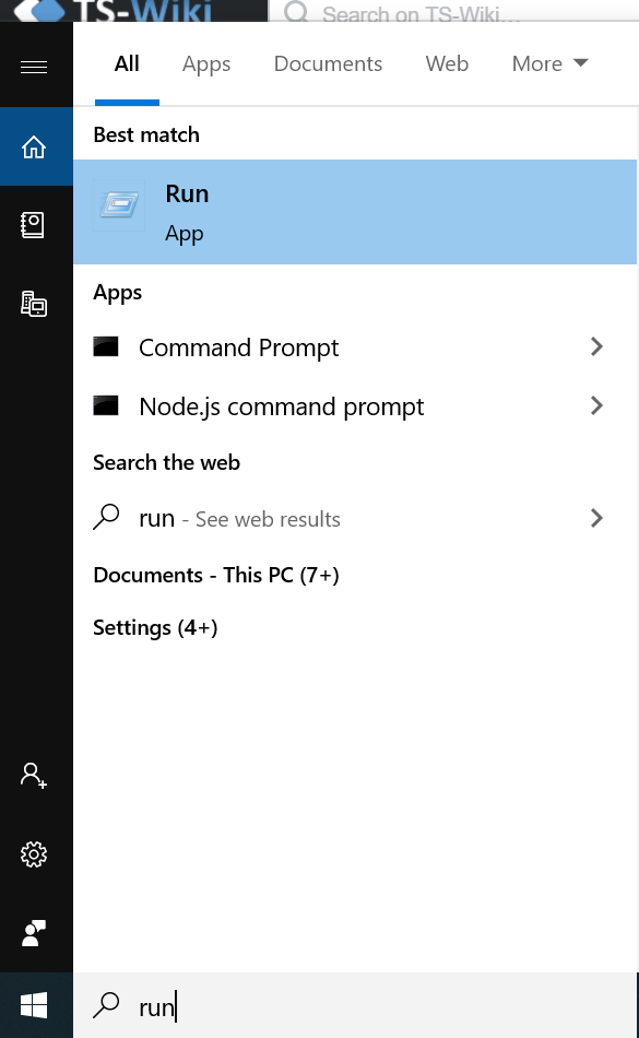 1. Open Search in the Toolbar and type Run