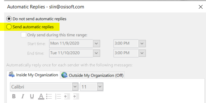 Toggle on/off auto-reply from Outlook