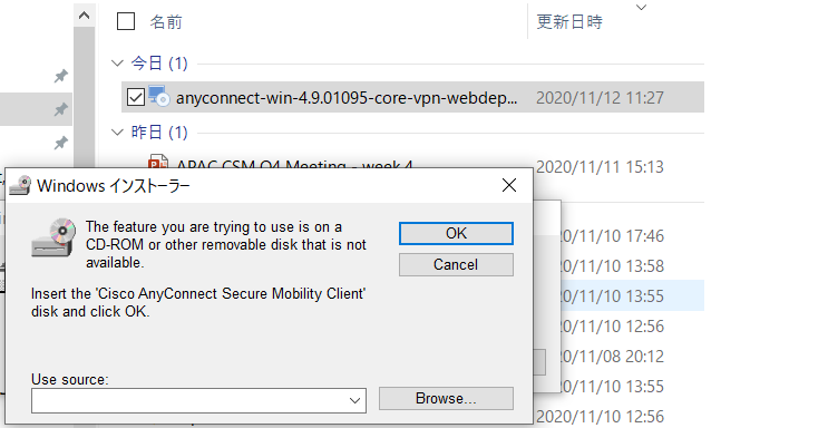 Getting Error Message when uninstall or install a program: The feature you are trying to use is on a CD-ROM or other removable disk that is not available.