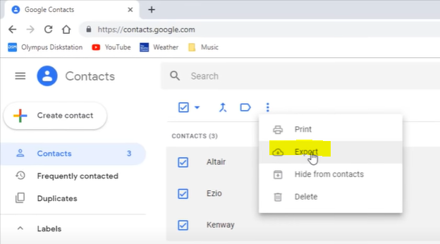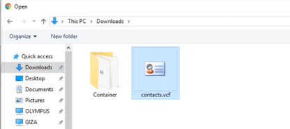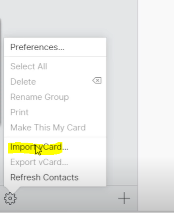 2. Go to Contacts > Setting (Gear icon) > choose Import vCard... > Open contacts.vcf