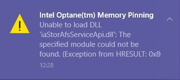 Intel Optane(tm) Memory Pinning: Unable to load DLL ` iaStorAfsServiceApi.dll `: The specified modul