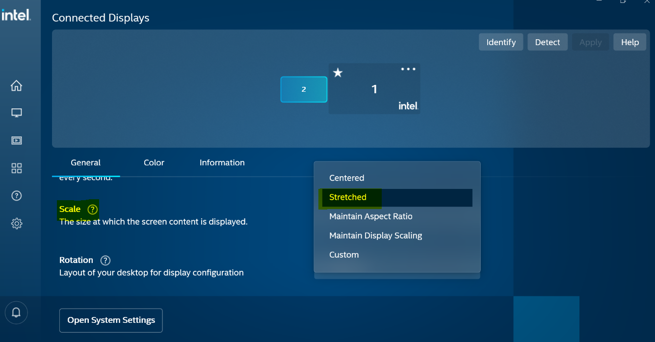 3. Choose Full-screen in the scaling mode