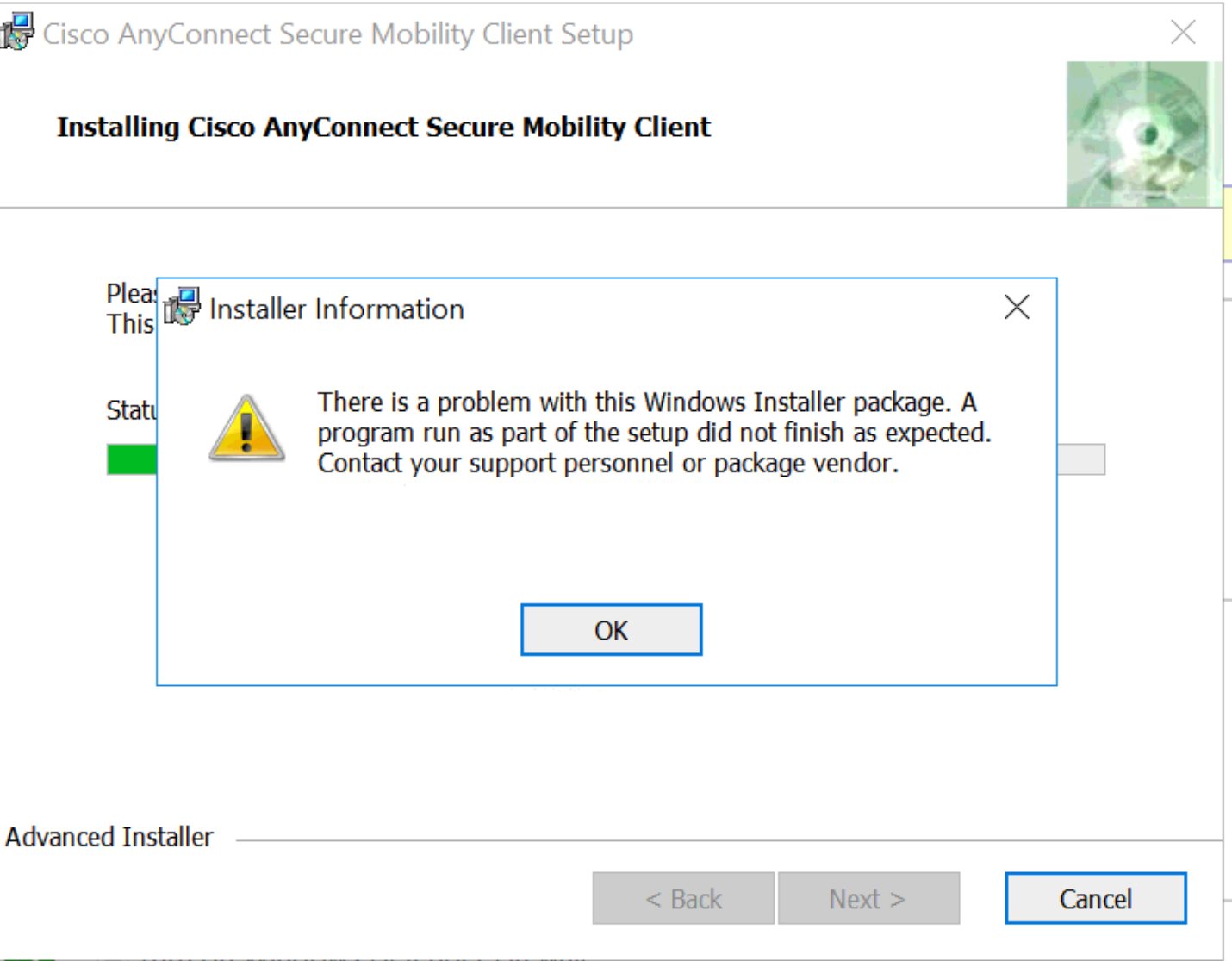 Unable to install Cisco AnyConnect Secure Mobility Client