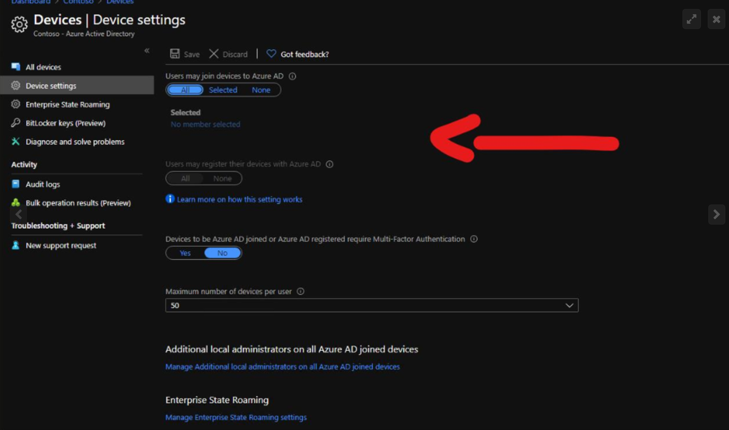 New machine cannot join to Azure AD via Intune. Error: Can`t AAD join windows 10 "Administrator policy does not allow user...to device join" error 801c03ed