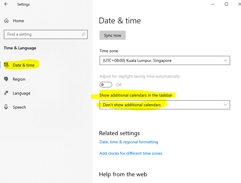 Do not have the Chinese language / other installed on my English Windows, but the calendar in the task bar still shows Chinese / others.