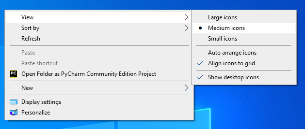 1. Click the right mouse button on the desktop, and click to set the desired large icon, medium icon and small icon size under View.