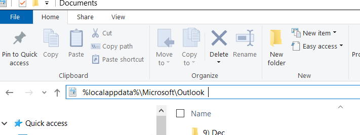 3. Enter the path : %localappdata%MicrosoftOutlook