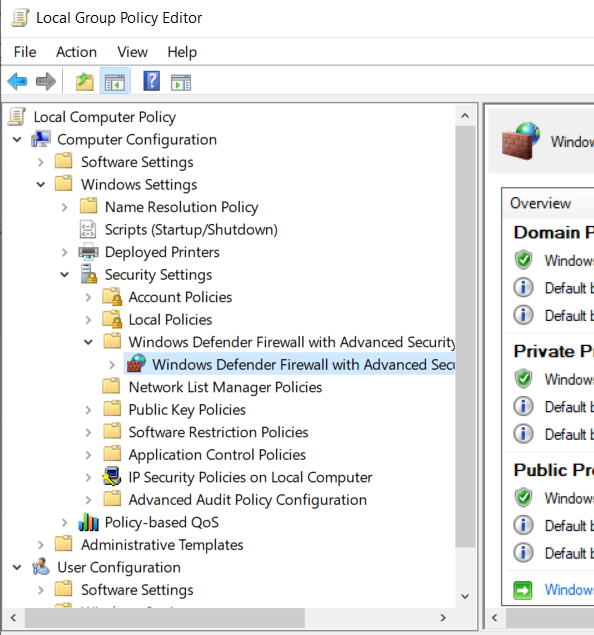 3. Computer Configuration > Windows Settings > Security Settings > Windows Defender Firewall with Advanced Security