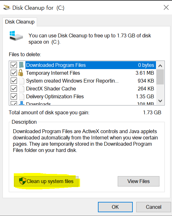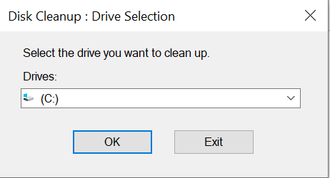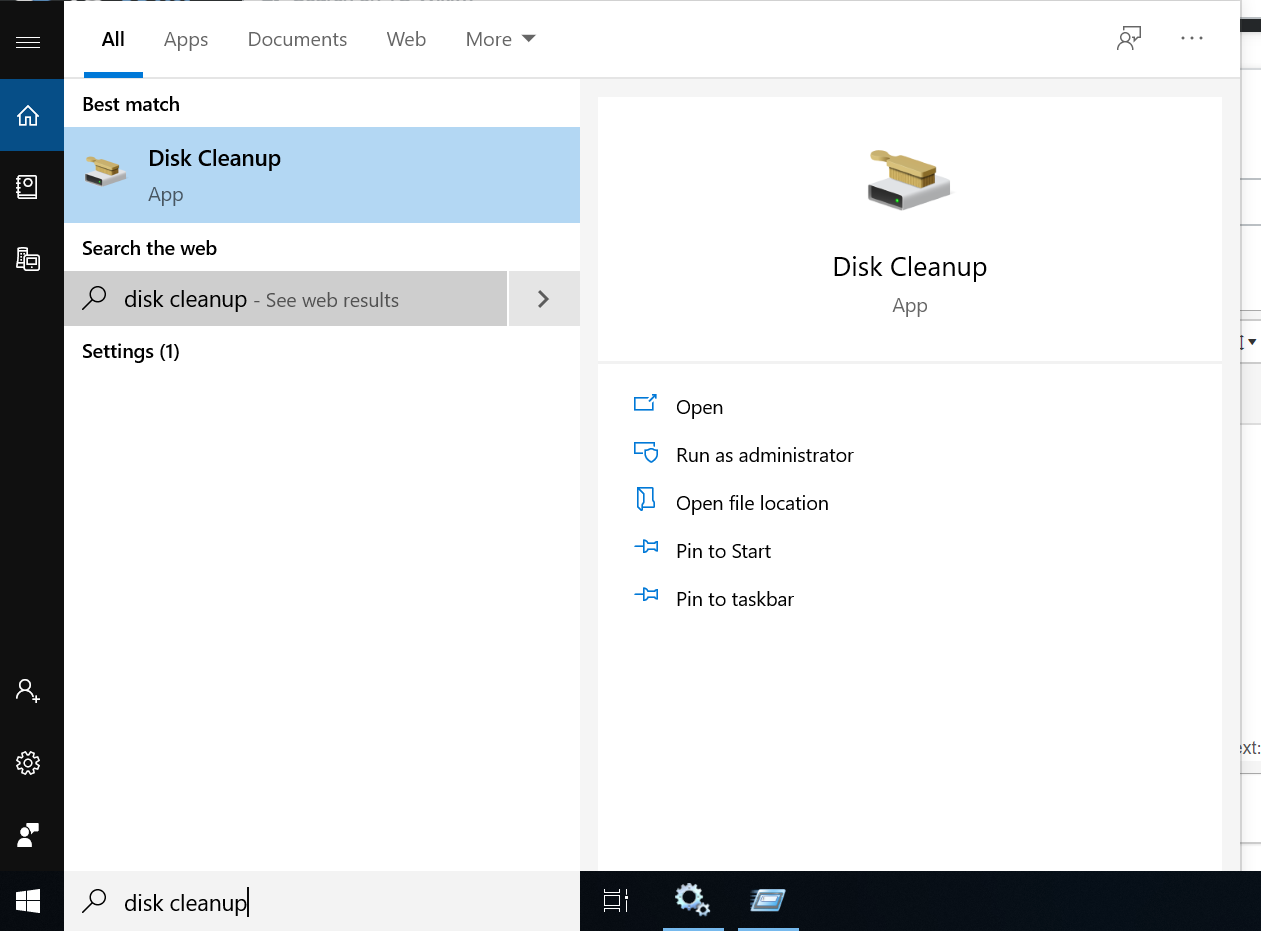 In the search box on the taskbar, type disk cleanup, and select Disk Cleanup from the list of results.