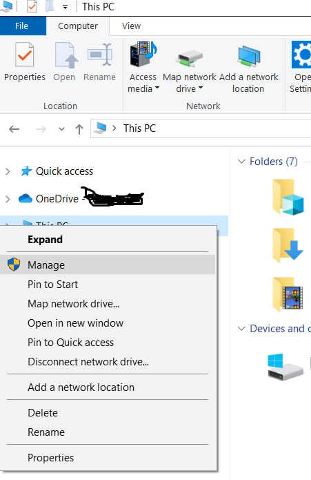 1. Right click on This PC and select Manage