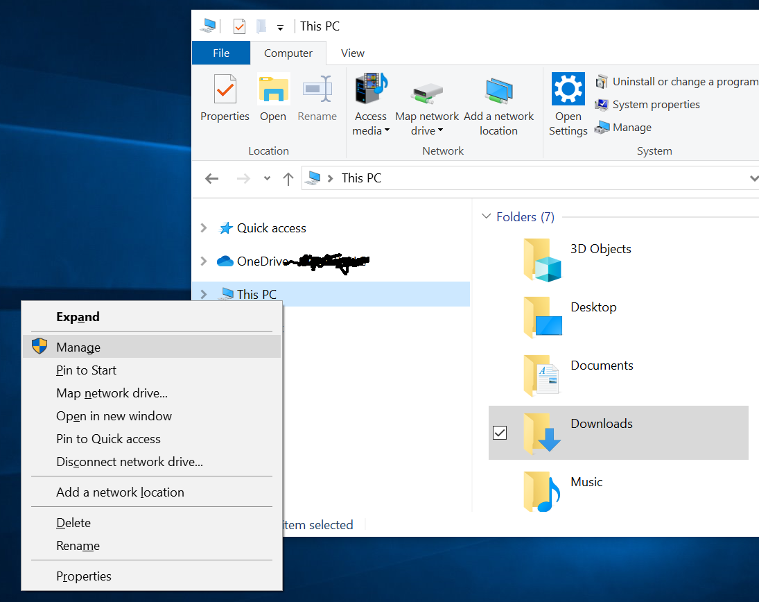 1. Open File Explorer > Right Click on This PC > Select Manage
