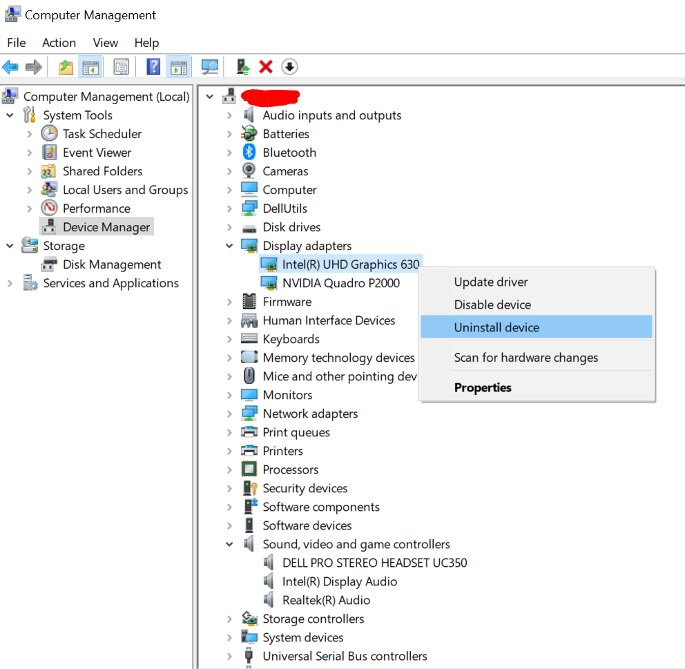 2. Open System Tools > Select Device Manager > Uninstall adapters under Display Adapters and Sound, video game Controllers